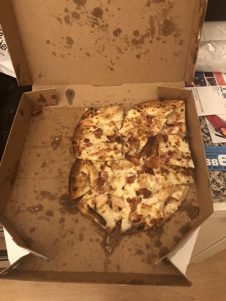 Grilled chicken breast, garlic parmesan white sauce, smoked bacon, tomatoes, cheeses made with 100% real mozzarella and provolone on a cheesy provolone crust.